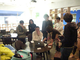 2011年3月、東日本大震災により、チェコのスタッフは帰国。お店は休店となりました。向かいのお宅のご厚意で、路地を挟んだ反対側に、本箱とパラソルを移動。キッチンはカフェanoを引き続き利用させてもらって、営業は続きます。