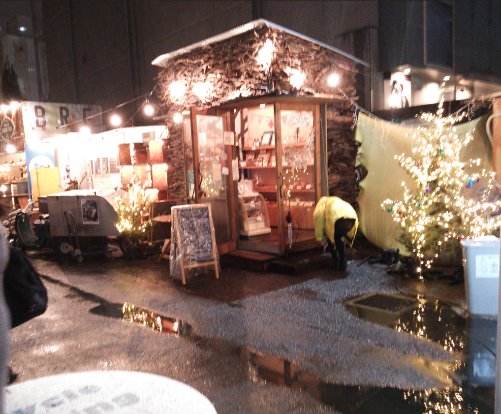 2010年12月。シュトーレンの予約が殺到したのをきっかけに、満を持して、パン屋に専念することになりました。チェコ料理店カフェanoの一角を借りて、オーブンを置かせてもらい、毎日ひたすらパンを焼き、屋台に立つ日々。雨でも雪でも、ここにパン屋があるということを知ってもらうために、休まず開店しました。このころに、店名を「Pain au Sourire」と改名。